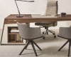 - Một chiếc bàn bằng gỗ óc chó kết hợp với các đệm da làm tổng thể thêm phần đẹp mắt. Tủ bên được trang bị kệ kéo, ngăn kéo và ngăn mở để đựng những vật dụng cá nhân. Kích thước: 1600 x 850 x 750